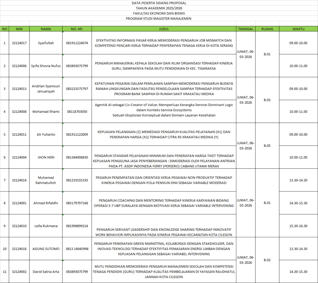 • Peserta sidang diharuskan datang sebelum waktu Sidang Proposal dimulai/ Sebelum Pukul 08.00